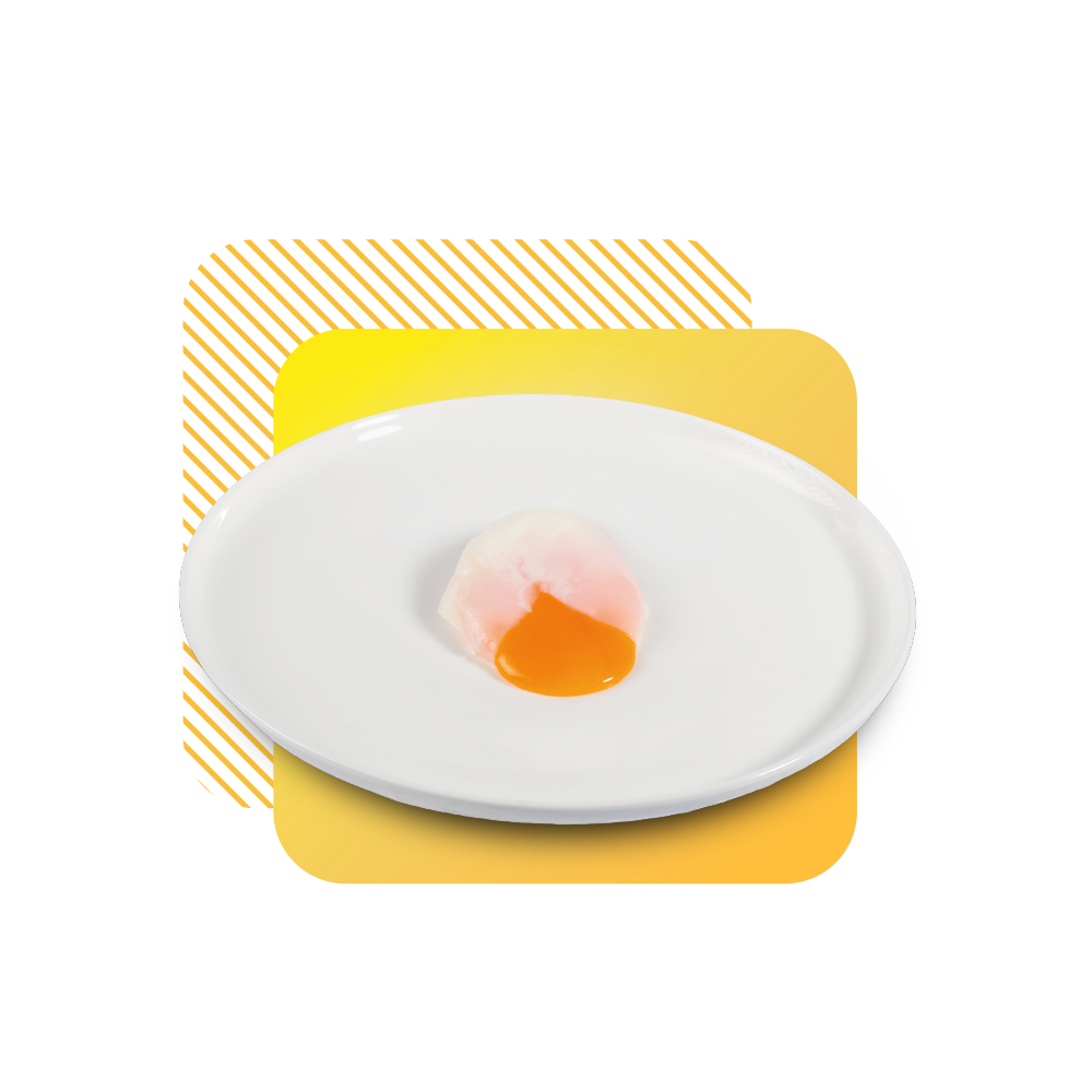 Huevo cocinado a baja temperatura, con yema cremosa y clara cuajada. Ideal para platos gourmet, brunches o menús con un toque sofisticado.